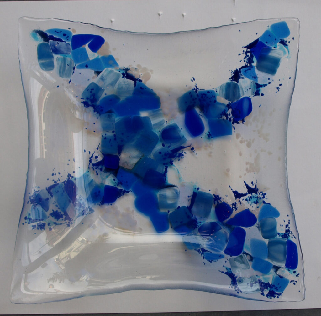 Aan het einde van de workshop heb je een glaspaneel van 18 × 18 cm ontworpen. Dit werk wordt na afloop in de oven gestookt en kan ongeveer een week later worden opgehaald. Het resultaat is een uniek, persoonlijk kunstwerk.